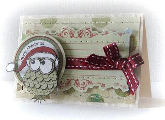 Love your pieced feathers on the owl and the subtle Christmas colors on all three cards. That sweet little caroler is adorable!