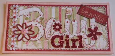 O wat zijn ze weer mooi. Geweldig papier hoor. Heb je dat stikwerk weer helemaal met de hand gedaan. Heel apart met al die bloemetjes. De bordjes met born en betautiful maken het helemaal af.