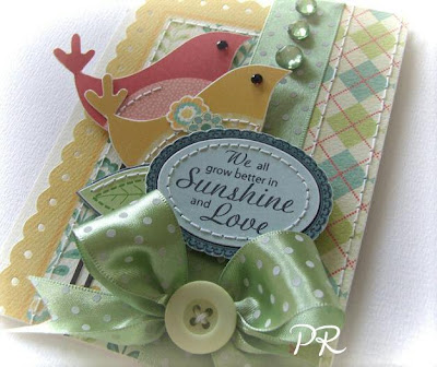 WOW Peet!! This card is awesome!! I love the birds, the layering, the stitching, the rhinestones, the YUMMY ribbon......I just love it all. Thanks for sharing!!