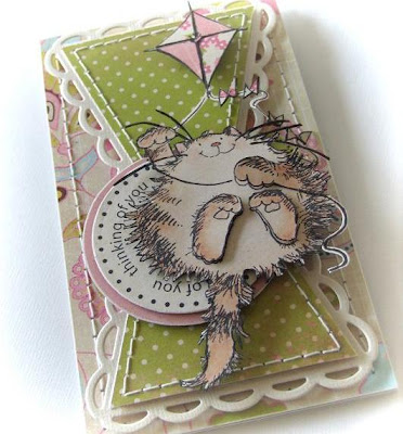 This card is just beautiful! I love pink and green together, and the cat is so cute. A perfect card, love it!