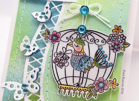 A very lovely card. I love the whimsy stamp. So well coloured and the design layout is nice too.